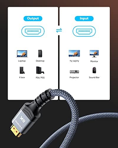 Highwings 8K 10K HDMI 2.1 Cable 48Gbps 6.6FT/2M, Certified High Speed HDMI Braided Cord-4K@120Hz