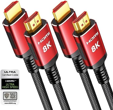 Snowkids 10K 8K HDMI 2.1 Cable 10FT 2-Pack, 48Gbps Certified High Speed HDMI Braided Cord (8K@60Hz,